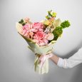 Букет розовых французских роз и эустом