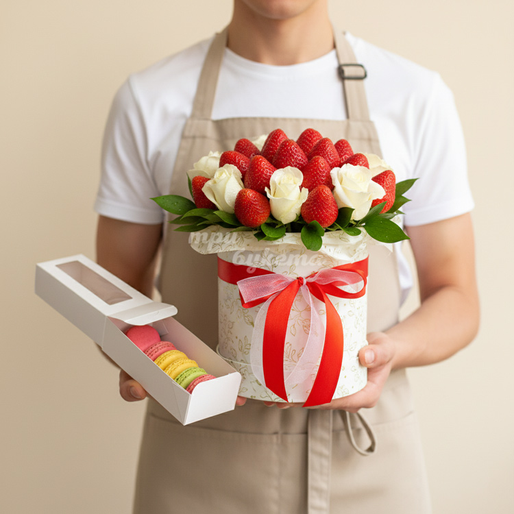 10 макарун с розами и клубникой