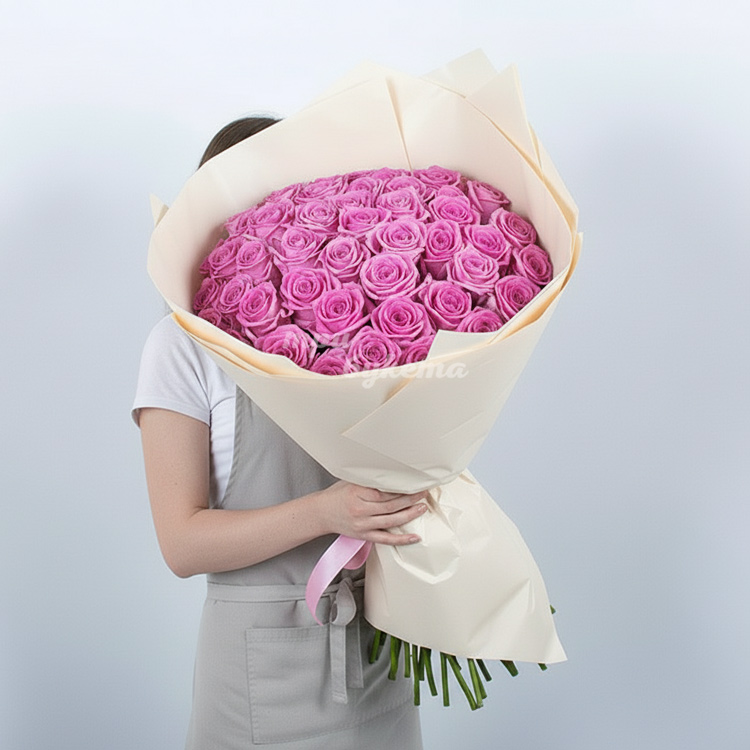 • Розовые розы, 51 шт.