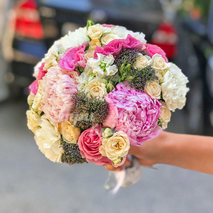 Букет из роз, пионов и гвоздик