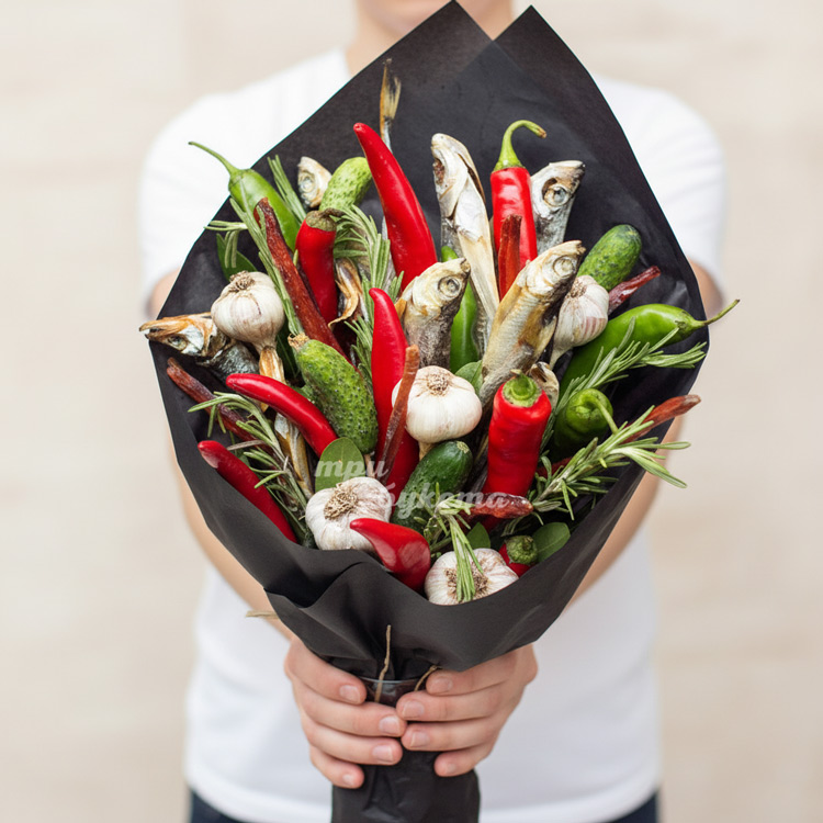 Букет с огурцами и рыбой