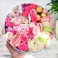 Композиция из 5 макарун и роз