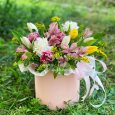 Коробка с гортензиями, розами и эустомами
