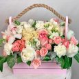 Коробка-сердце красных и розовых роз