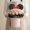 Коробка желтых орхидей и розовых роз