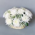Корзина белых ромашек, хризантем и роз