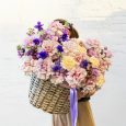 Корзина розовых французских роз и ранункулюсов