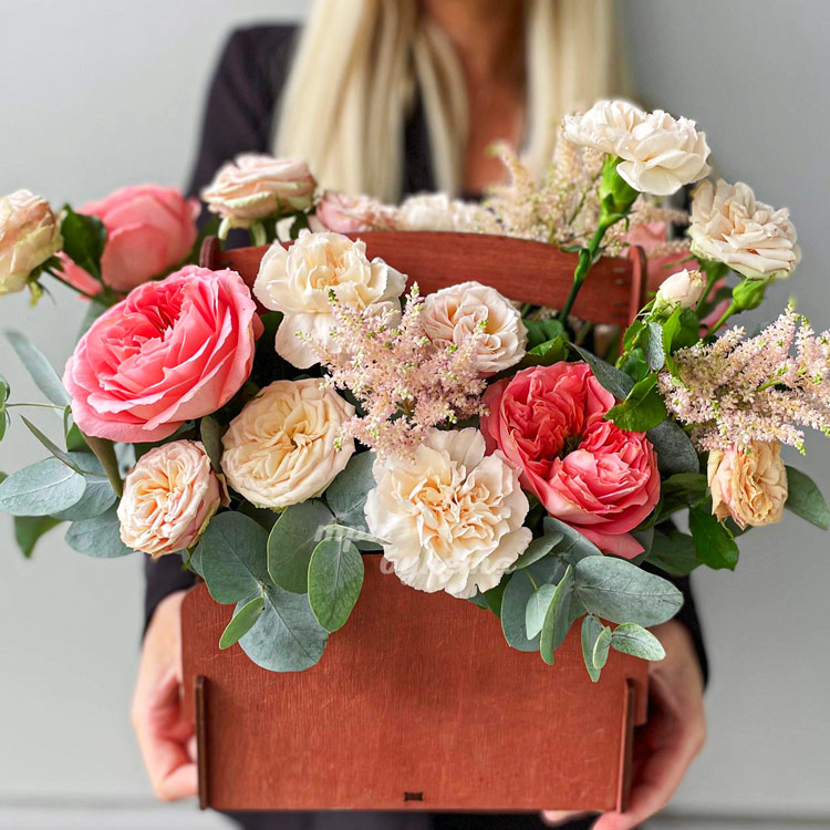 Ящичек роз и гвоздик на 1 сентября